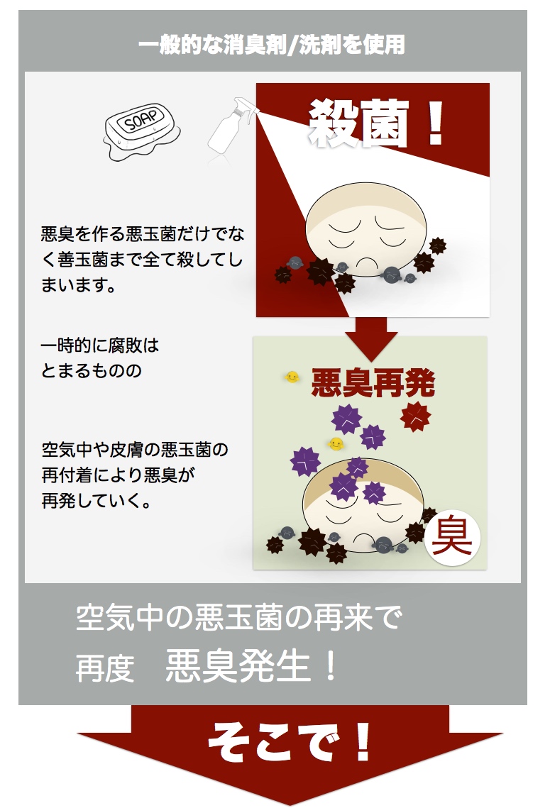 | 健康な完全消臭の秘訣は こだわり抜いた3つのアプローチにあります |