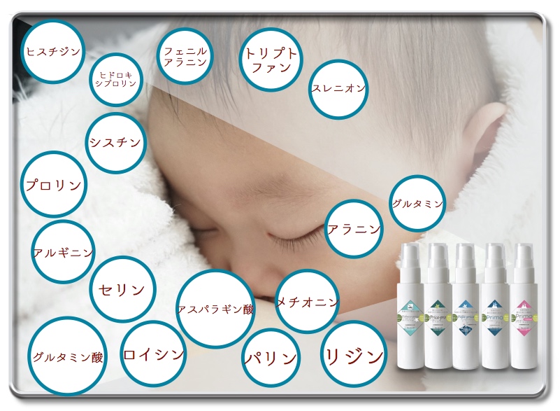 | ●アミノ酸20種類 ●特異金属イオン15種類 ●ミネラル34種類 プリモ/ピリカシリーズは上記成分で作られた羊水と成分・性状等共に酷似した酵素活性補助剤です。羊水は胎児に悪影響のある成分を分解・無害化し、胎児の尿や便も分解していきます。この機能を消臭に利用したのがプリモ/ピリカシリーズです。天然由来の成分ですので誤って人体に付着しても害はありません。 |